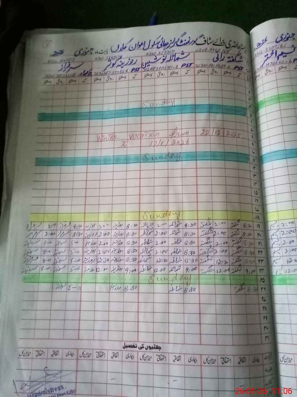 | Name: UM**** ULMA**** Designation: (School Headmaster's/Headmistress's) S.S.T.(Arts) Phone/Cell Number: 03**** |
