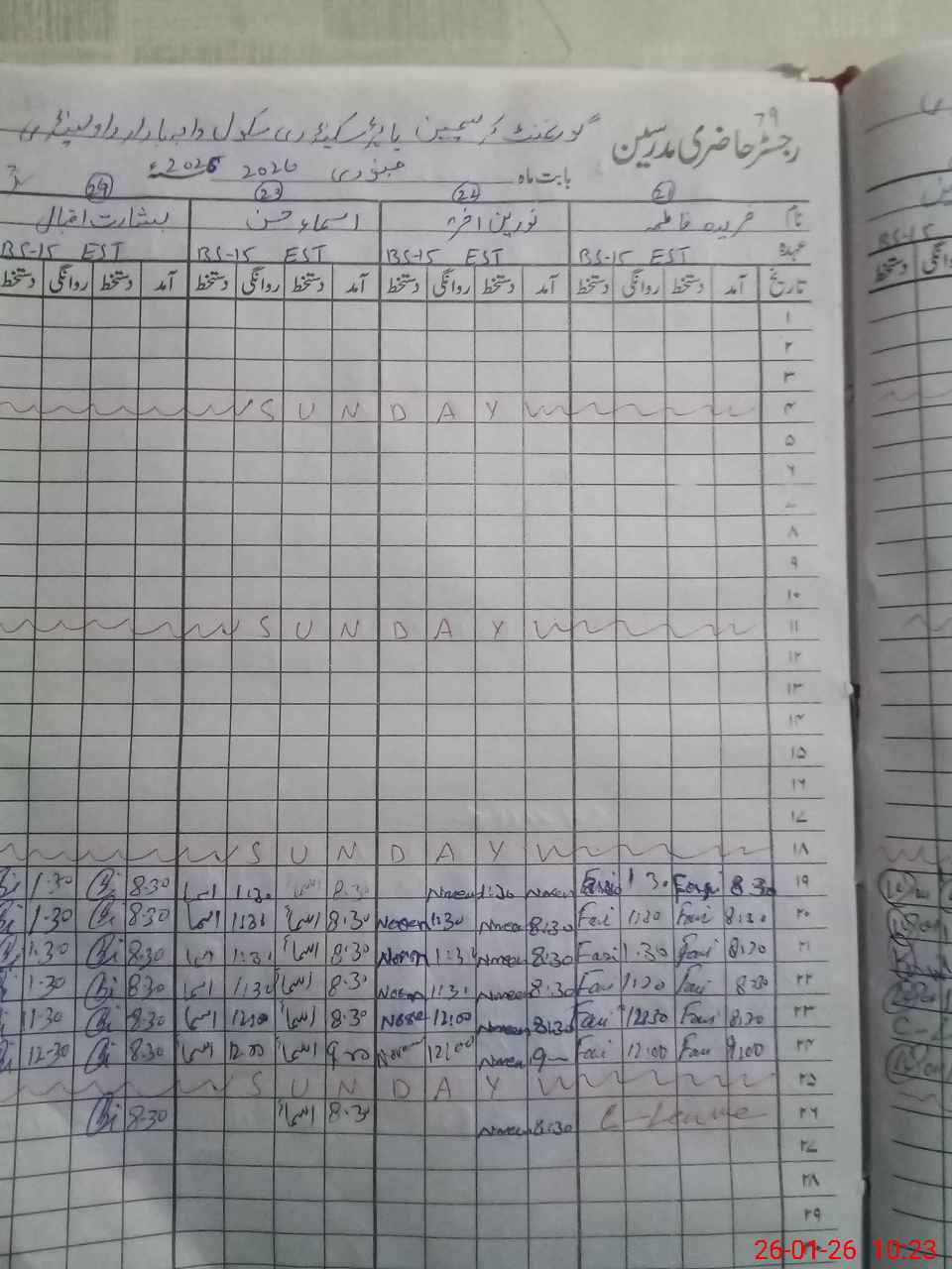 | 42**** | Fa**** Fa**** | EST Science | Regular | 0 | 0 | 0 | 0 | 0 | 0 | 0 | 0 | 0 | Casual |