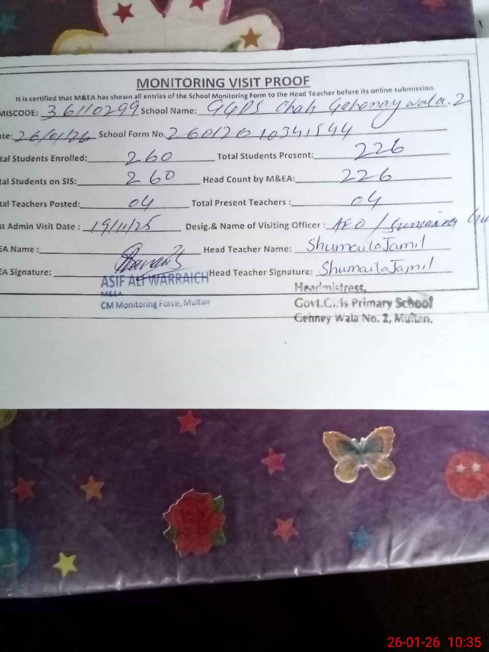 | Certified that this School was Inspected by the Undersigned MEA/DMO Today and the Information Stated Above is as Per Record. | |||||