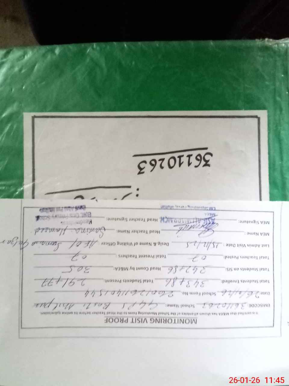 | Certified that this School was Inspected by the Undersigned MEA/DMO Today and the Information Stated Above is as Per Record. | |||||