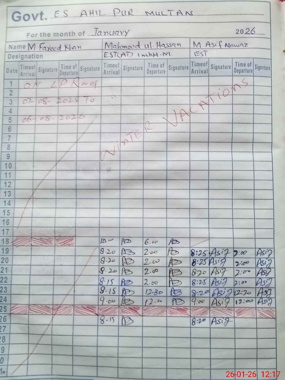 | Name: Fa**** Kh**** Designation: (School Headmaster's/Headmistress's) Head Master Phone/Cell Number: 03**** |