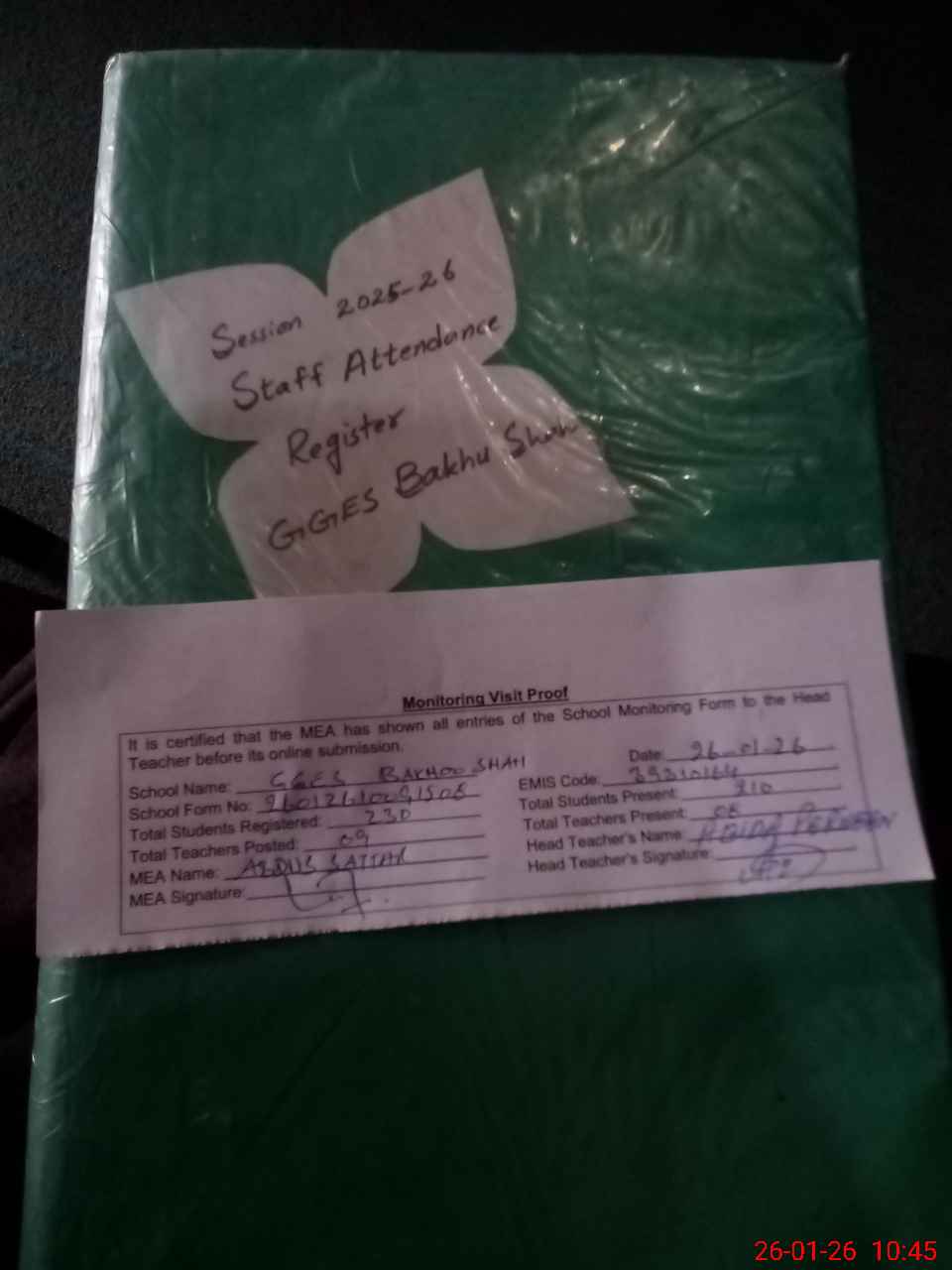| Attendance Register | Head Teacher | MEA with School | Visit Proof |