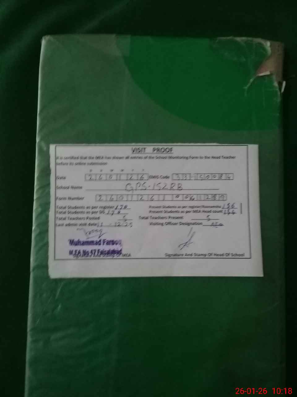 | Attendance Register | Head Teacher | MEA with School | Visit Proof |