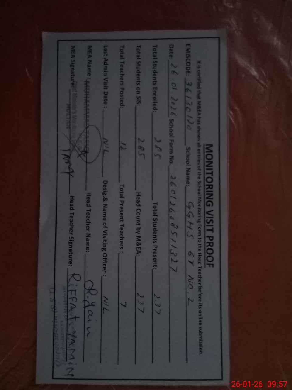 | EMIS Code: 36130120 | Name of School: GGHS 6-T NO. 2 P/O MAKHDOOM RASHEED | |||