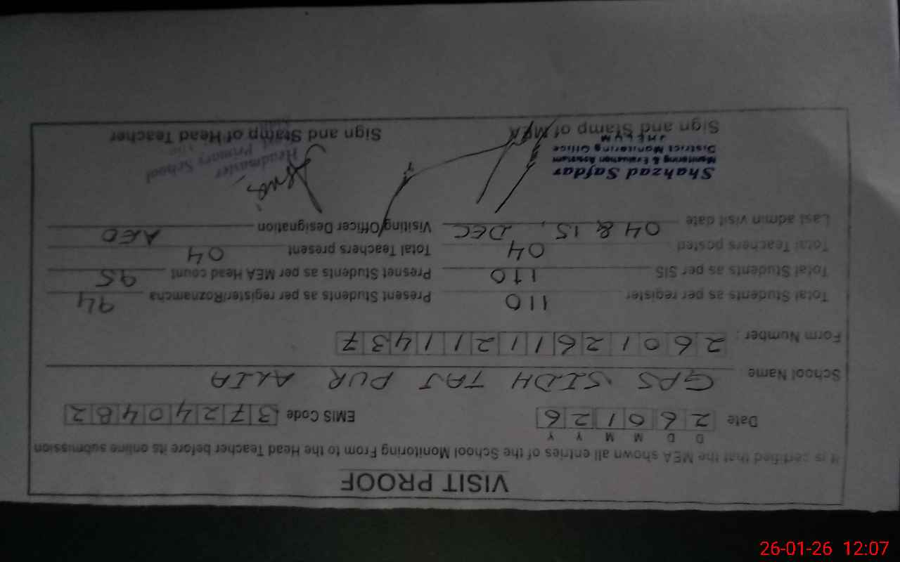 | Certified that this School was Inspected by the Undersigned MEA/DMO Today and the Information Stated Above is as Per Record. | |||||