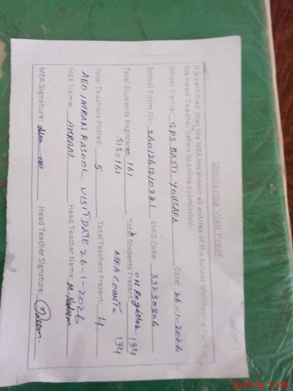 | EMIS Code: 33230306 | Name of School: GPS BASTI YOUSAFA | |||