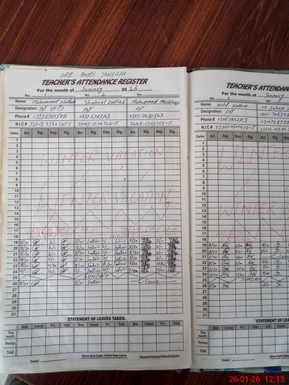 | Name: MU**** NA**** Designation: (School Headmaster's/Headmistress's) PST Phone/Cell Number: 03**** |