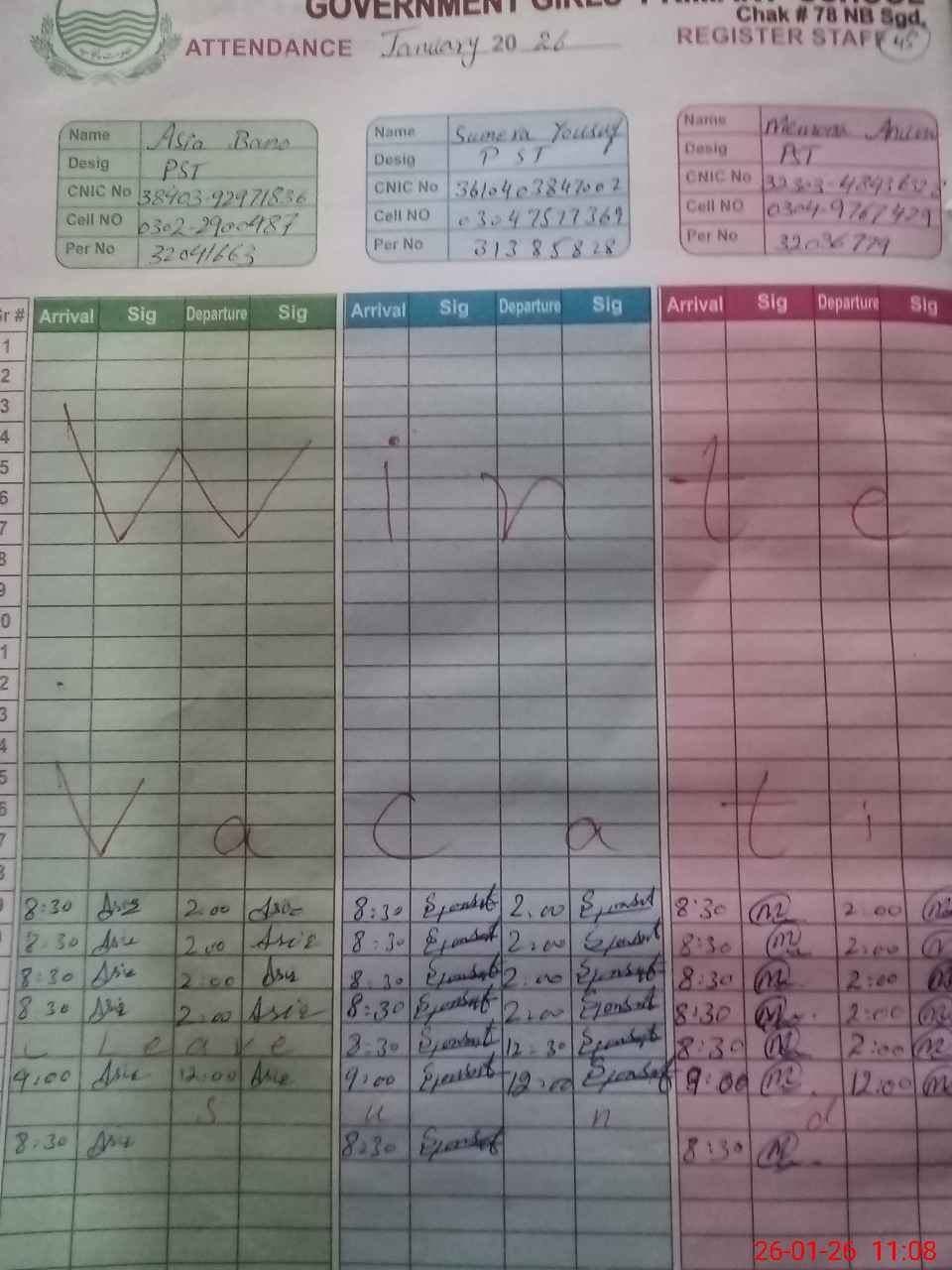 | Name: AS**** BA**** Designation: (School Headmaster's/Headmistress's) PST Phone/Cell Number: 03**** |