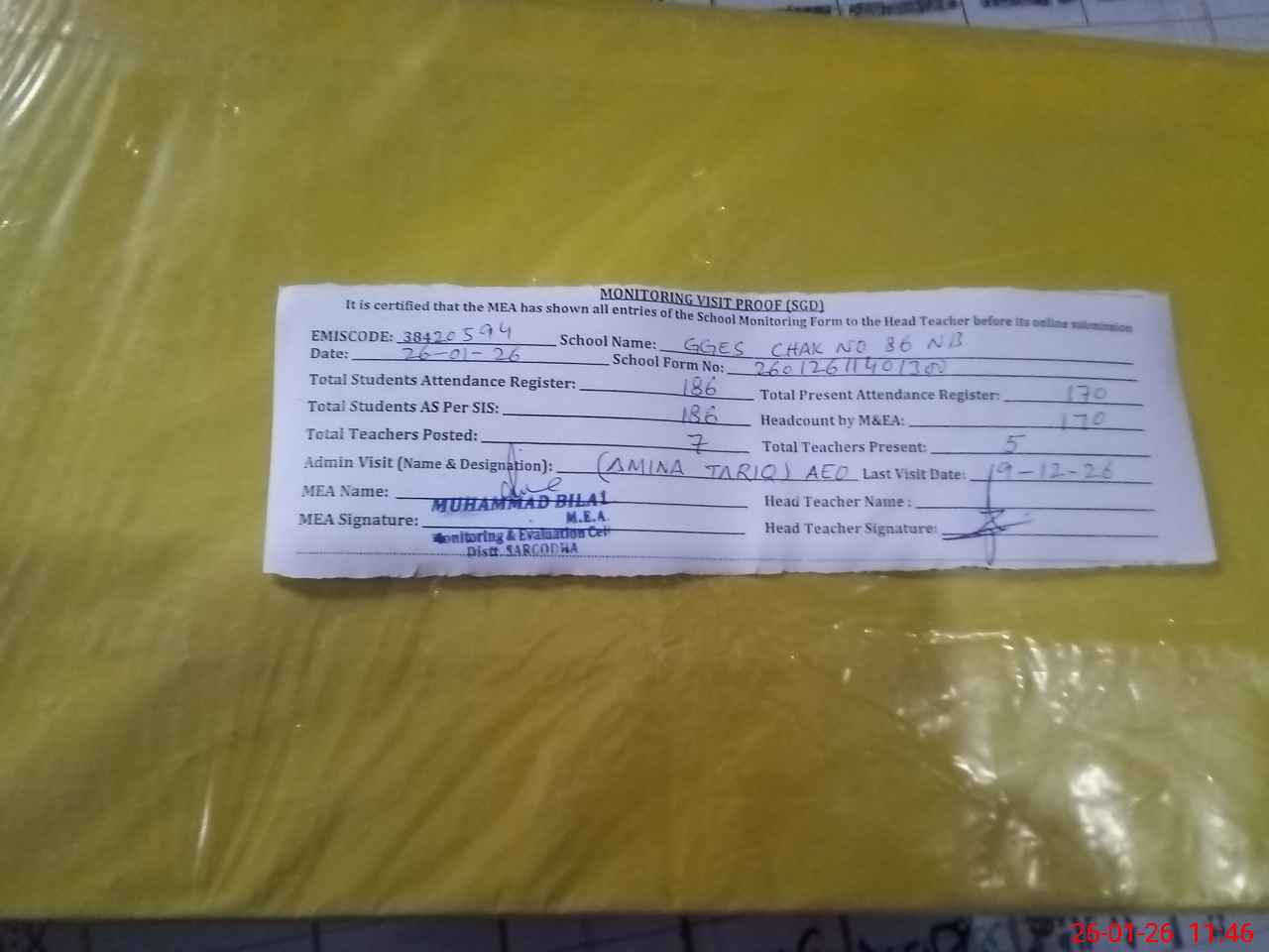 | EMIS Code: 38420594 | Name of School: GGES CHAK NO.86 NB | |||