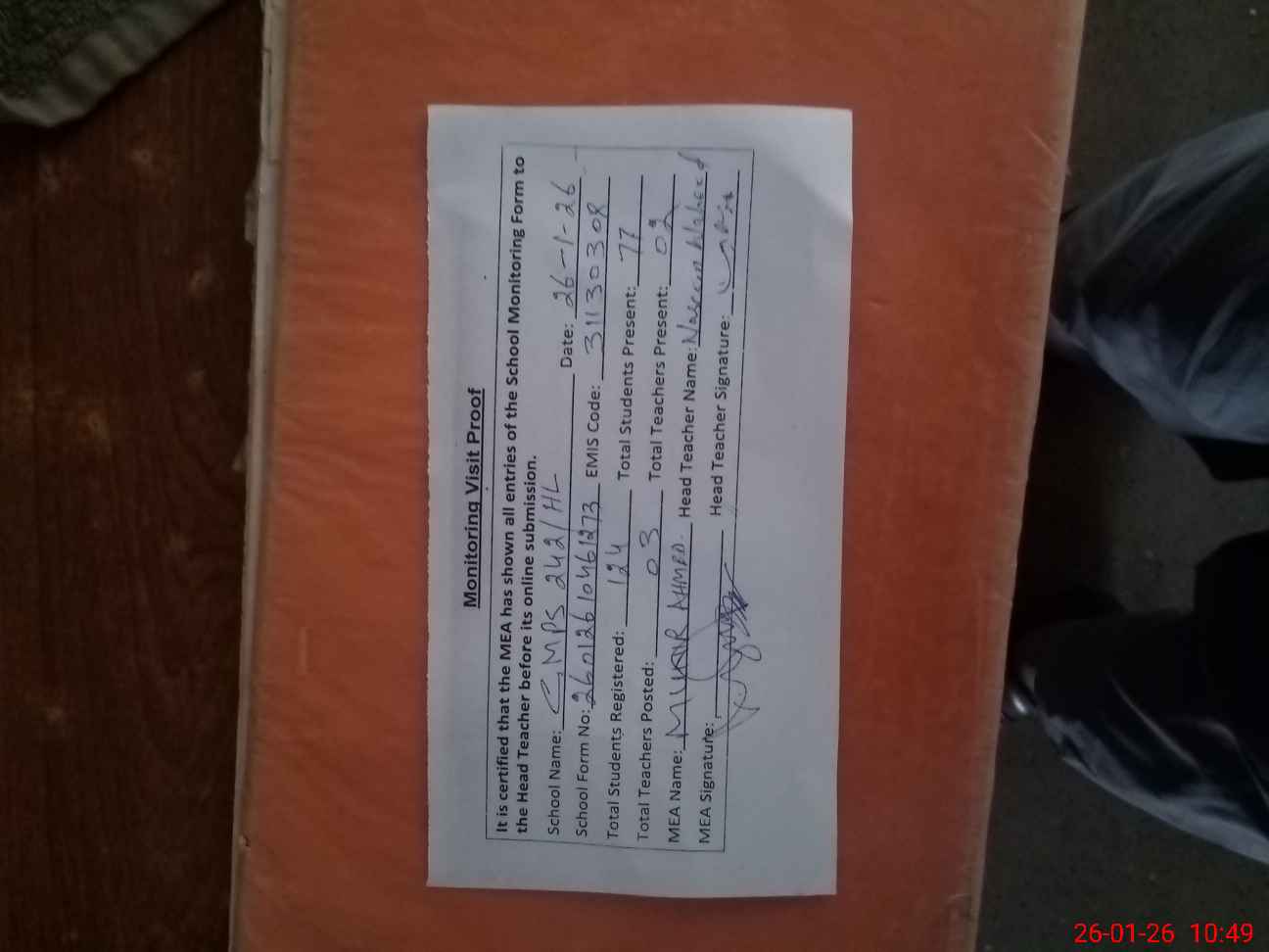 | EMIS Code: 31130308 | Name of School: GMPS CHAK NO. 242 HL | |||