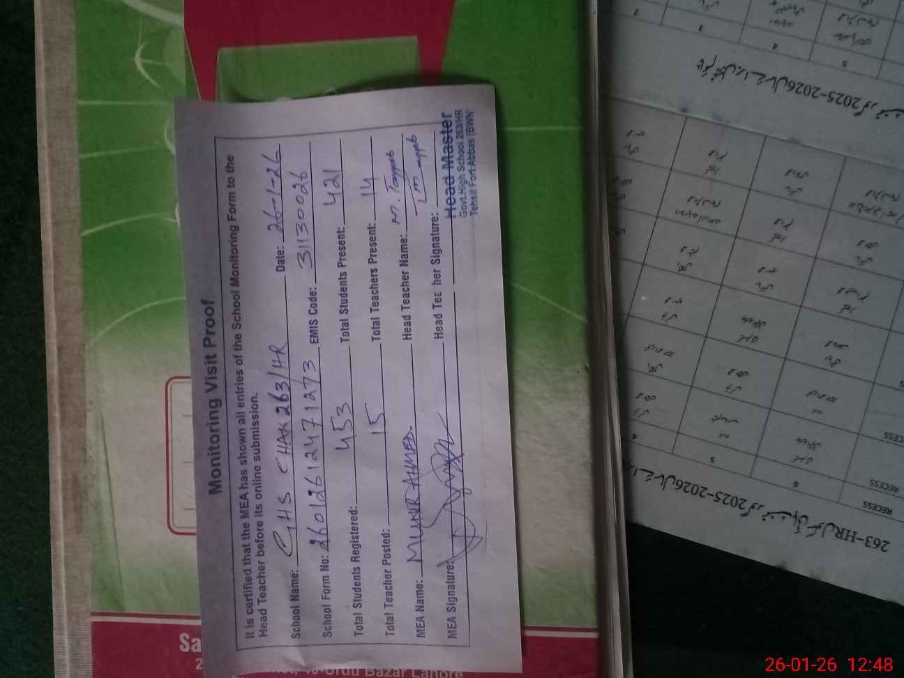| EMIS Code: 31130026 | Name of School: GHS 263/HR | |||