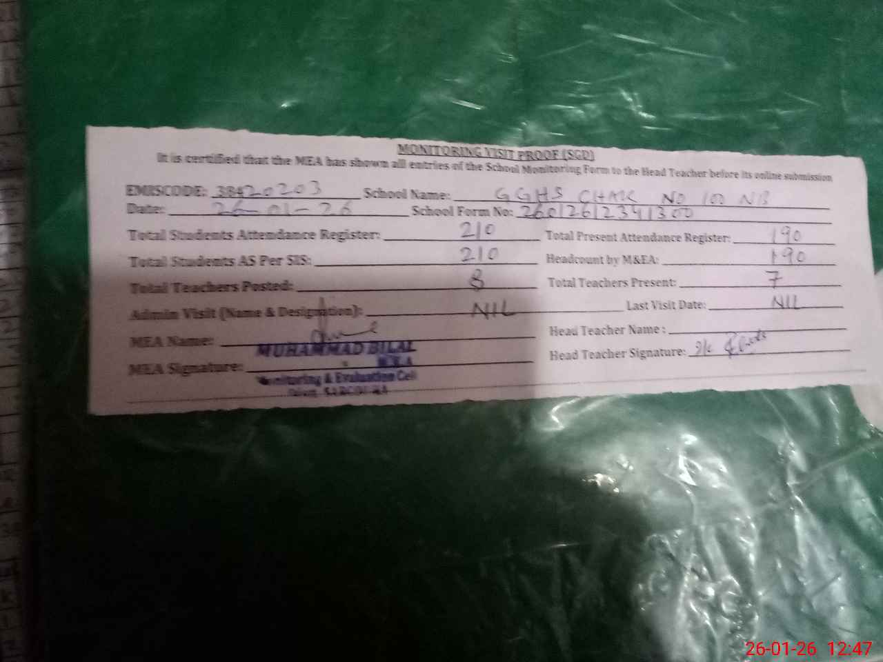 | EMIS Code: 38420203 | Name of School: GGHS CHAK NO.100 NB | |||