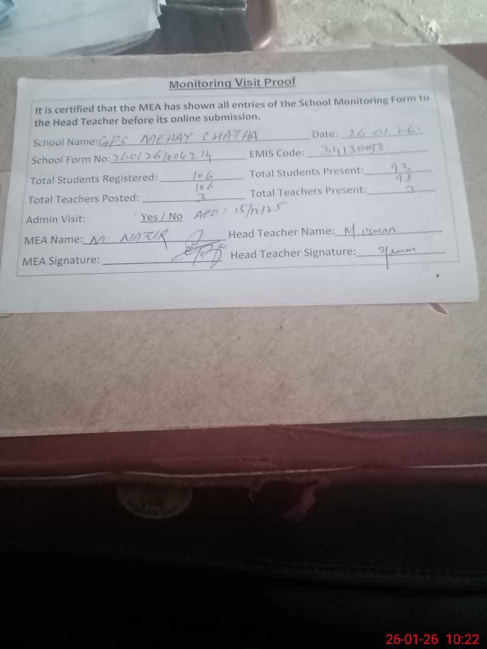 | EMIS Code: 34130093 | Name of School: GPS MAHEY CHATHA | |||