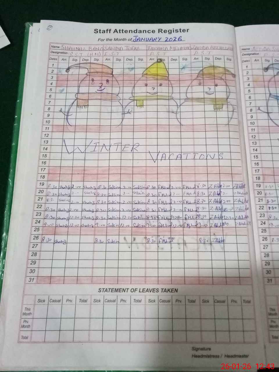 | Leave | Duty | Absent | Maternity | Medical | Ex- Pak |