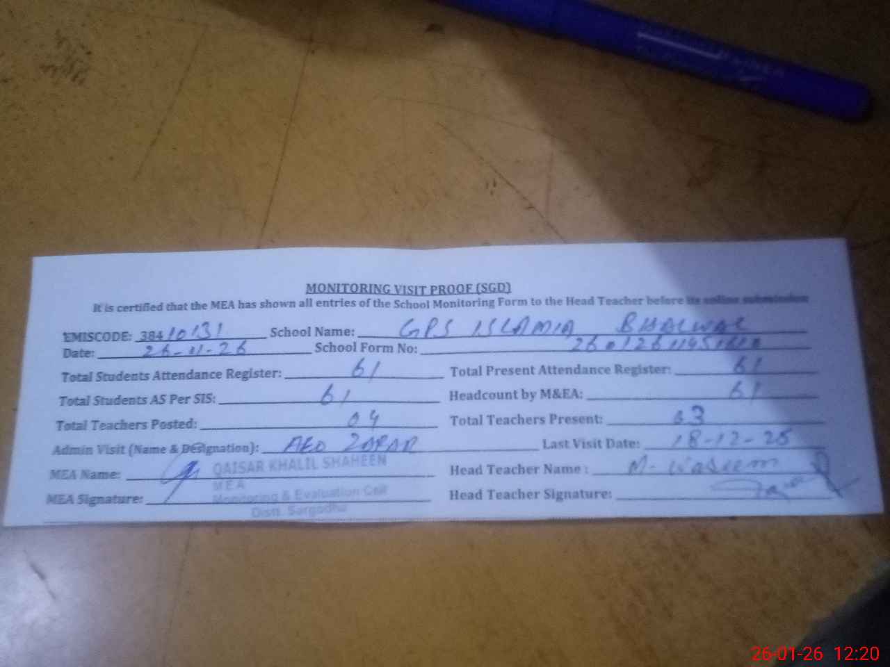 | EMIS Code: 38410131 | Name of School: GPS ISLAMIA BHALWAL BLOCK NO 3 | |||