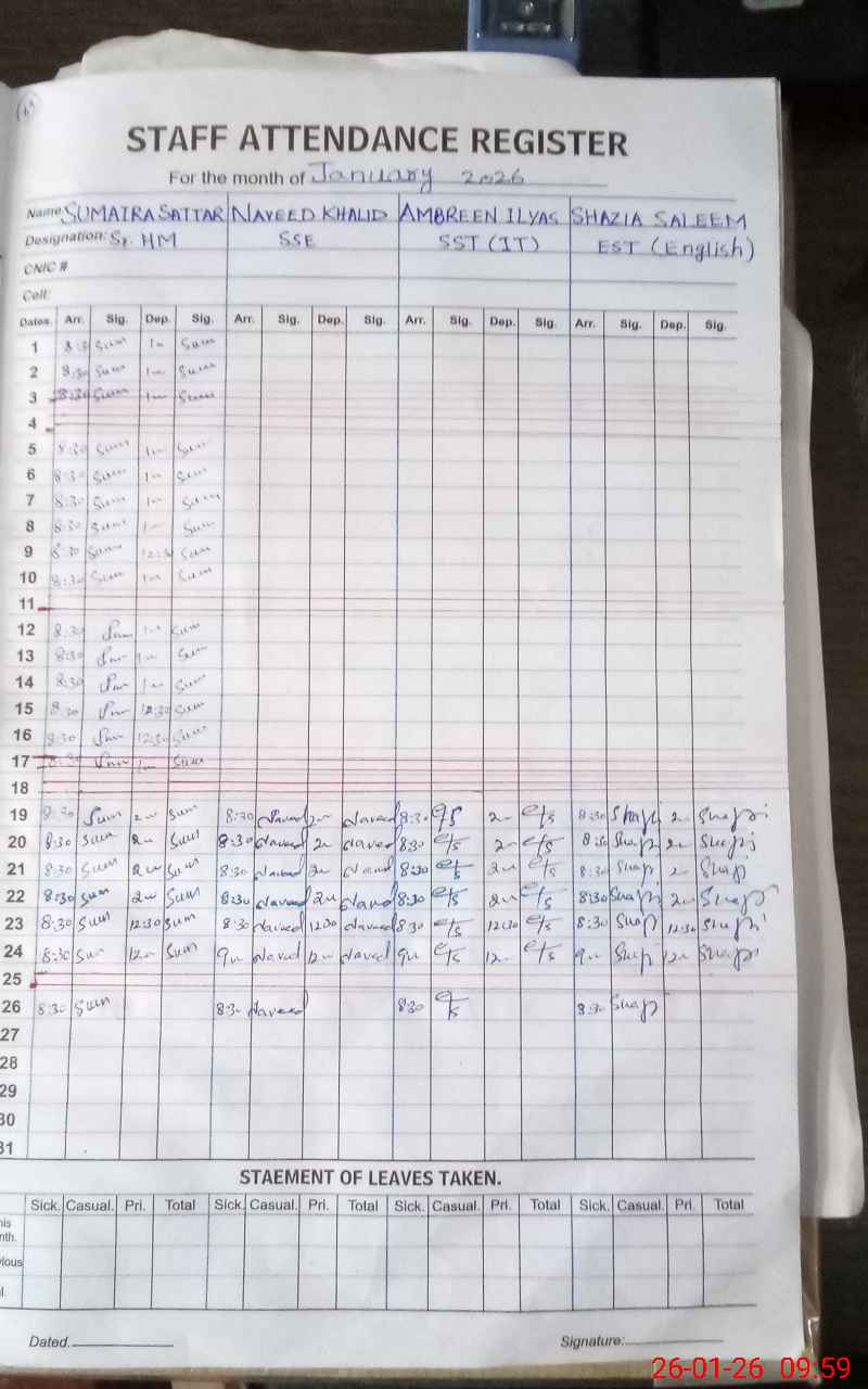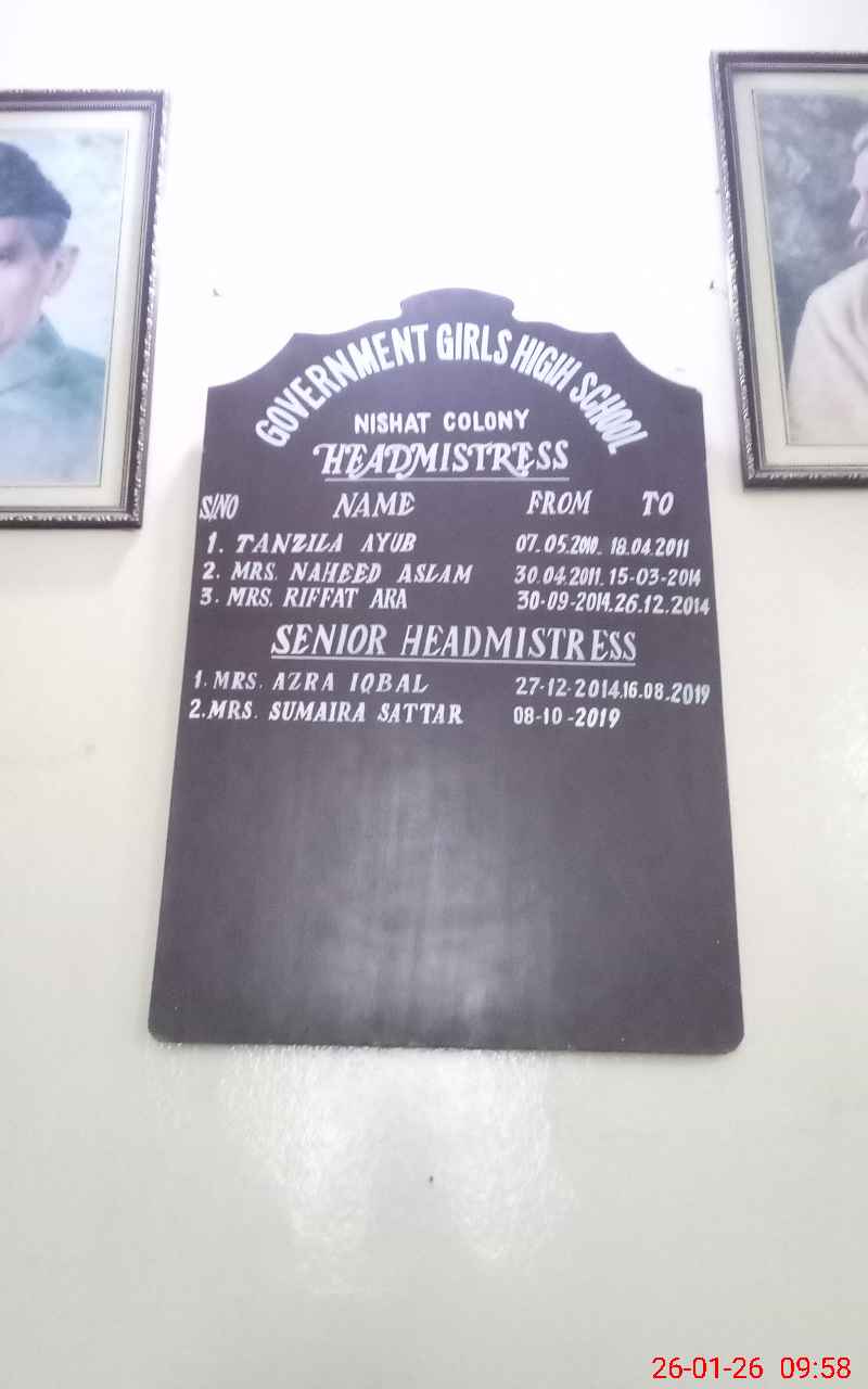 | EMIS Code: 35210170 | Name of School: GGHS NISHAT COLONY | |||