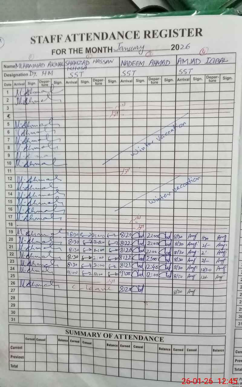 | Remarks (Use Separate Page if Required): Teachers Muhammad Manzoor, Sher Hussain and Kauser are on LPR showing on teachers list | |||||