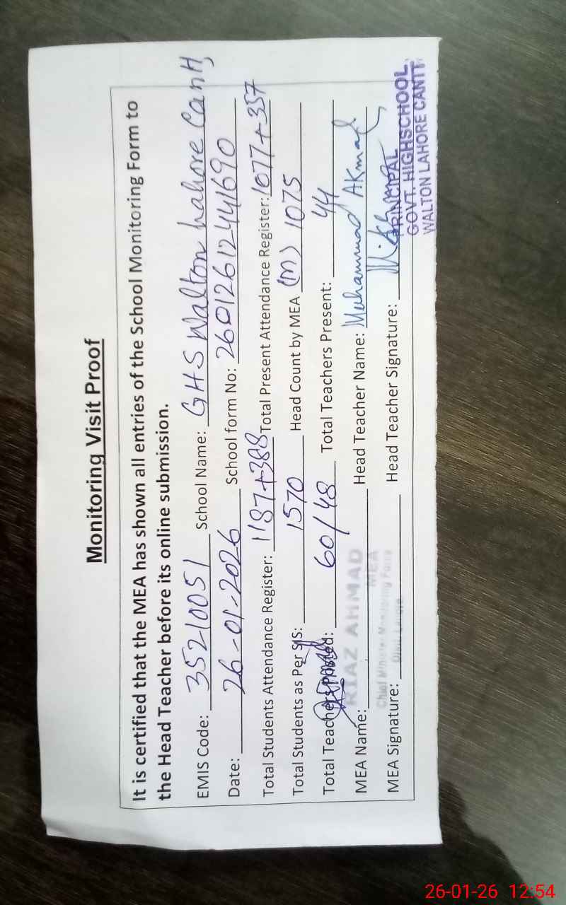 | Attendance Register | Head Teacher | MEA with School | Visit Proof |