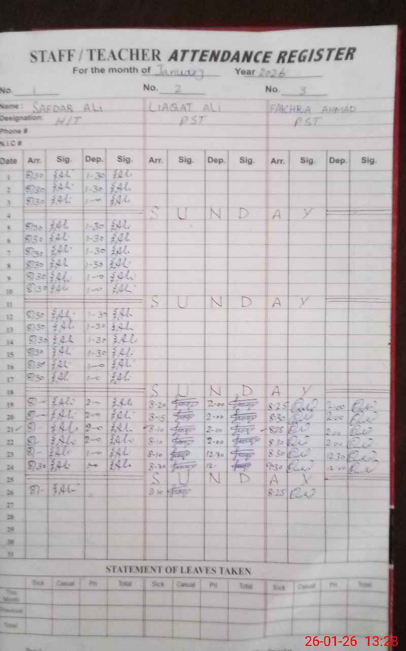 | Name: Sa**** Al**** Designation: (School Headmaster's/Headmistress's) PST Phone/Cell Number: 03**** |