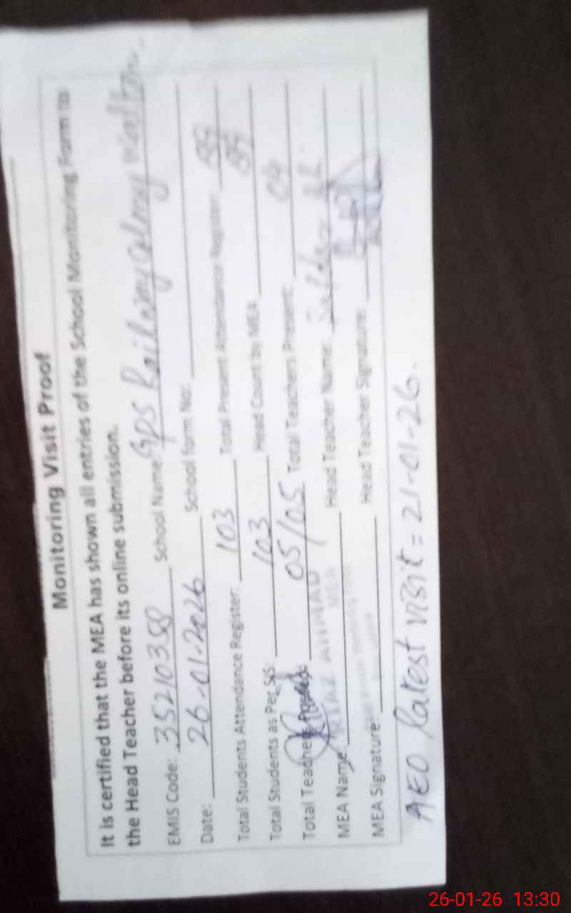 | EMIS Code: 35210358 | Name of School: GPS RAILWAY COLONY WALTON | |||