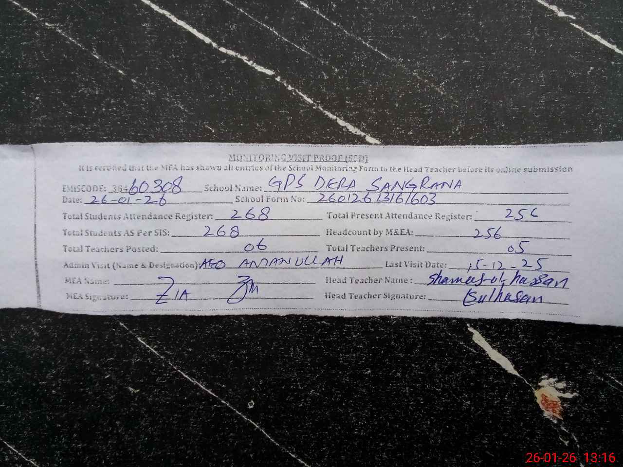 | EMIS Code: 38460308 | Name of School: GPS DERA SANGRANA | |||
