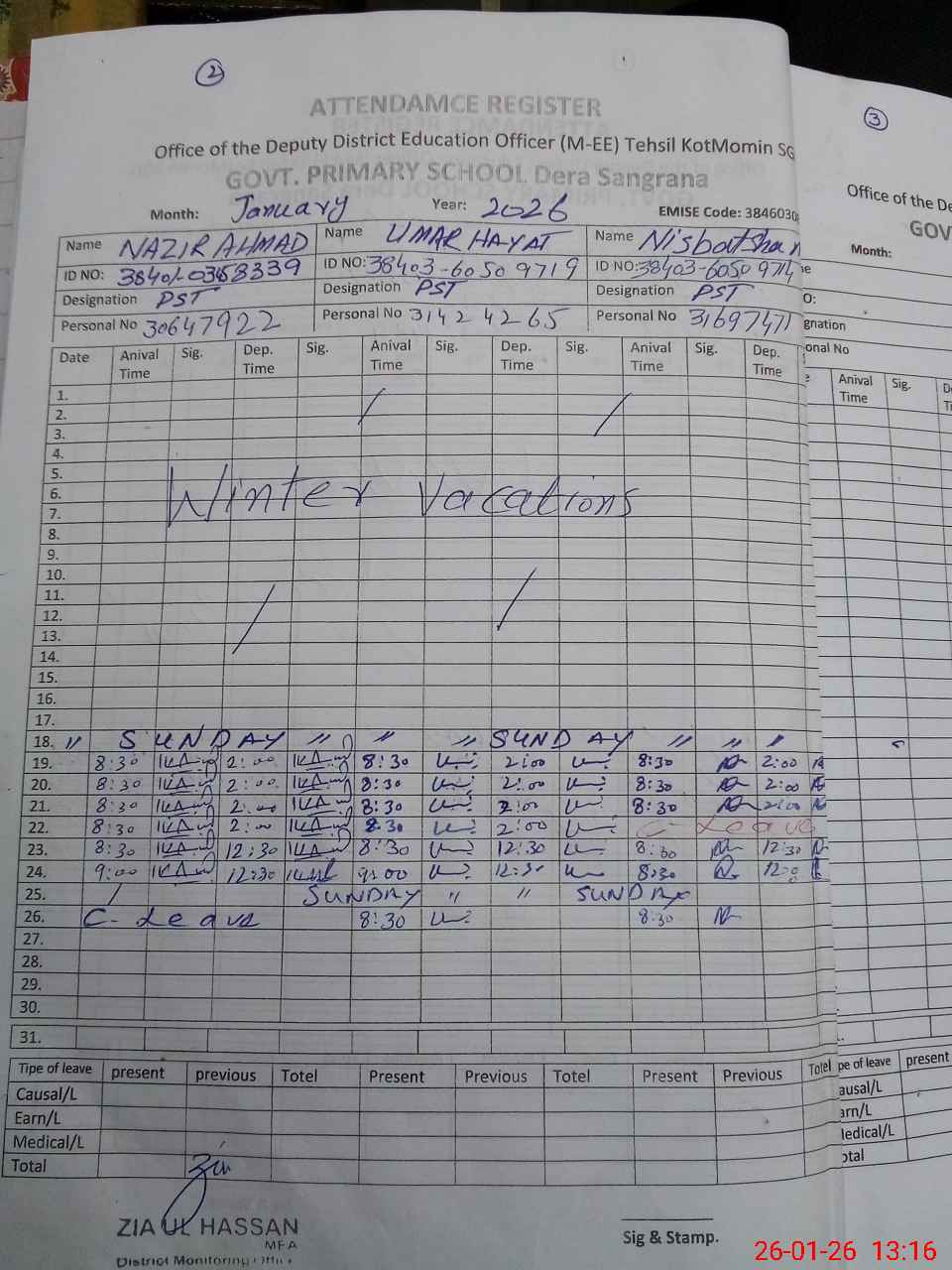 | Name: Sh**** UlHa**** Designation: (School Headmaster's/Headmistress's) PST Phone/Cell Number: 03**** |