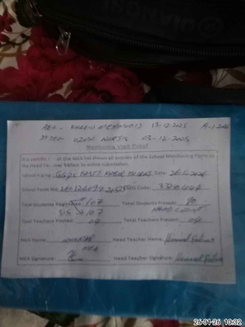 | Certified that this School was Inspected by the Undersigned MEA/DMO Today and the Information Stated Above is as Per Record. | |||||