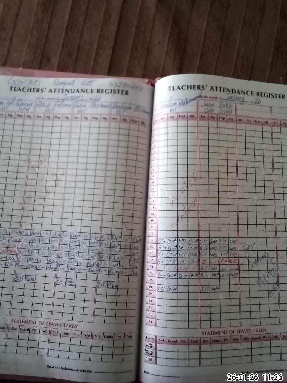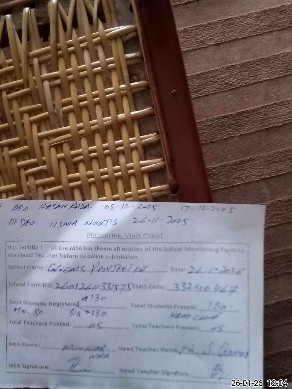 | Attendance Register | Head Teacher | MEA with School | Visit Proof |