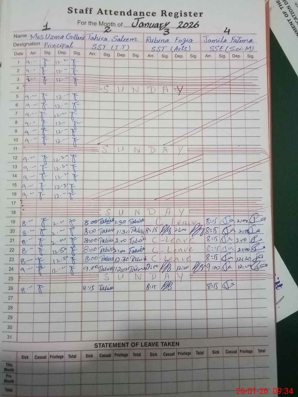 | CNIC | Full Name | Designation | R/C | Absence During Last Calender Month |