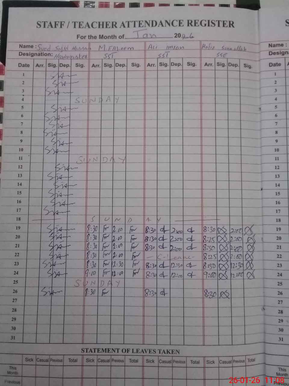 | Name: SY**** SA**** HA**** Designation: (School Headmaster's/Headmistress's) HEAD MASTER Phone/Cell Number: 03**** |