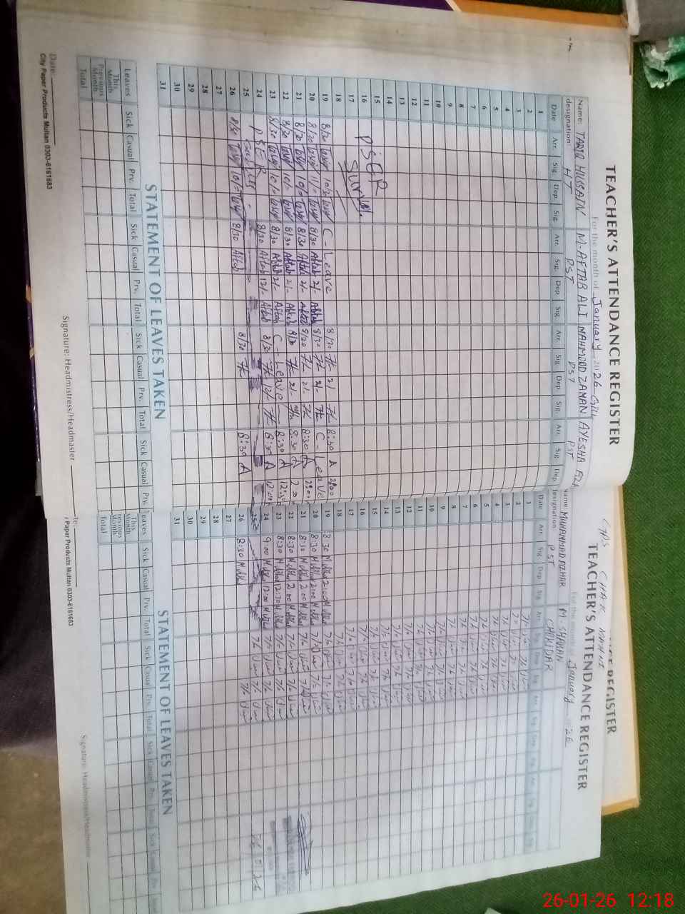 | Name: TA**** UH**** Designation: (School Headmaster's/Headmistress's) PST Phone/Cell Number: 03**** |