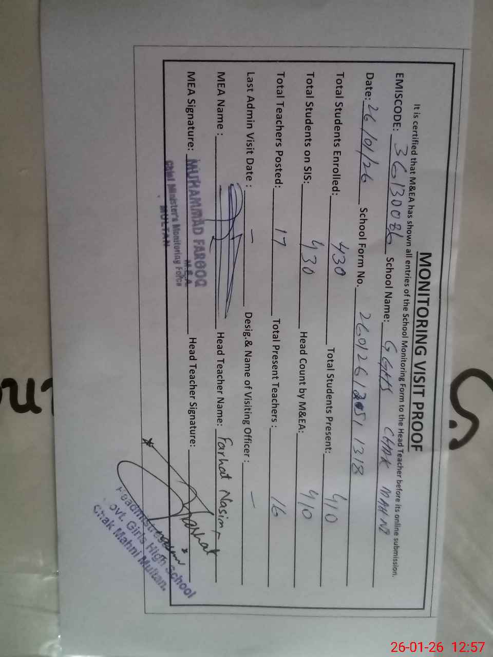 | EMIS Code: 36130086 | Name of School: GGHS CHAK MAHNI NEAR PS UMER PUR | |||