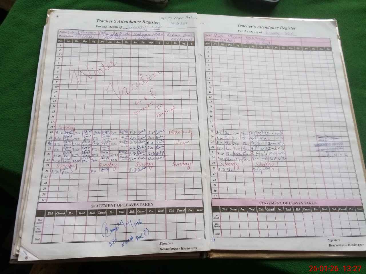 | 36**** | Re**** Ba**** | PST Science/Maths | Regular | 0 | 0 | 0 | 0 | 0 | 0 | 0 | 0 | 0 | Maternity |