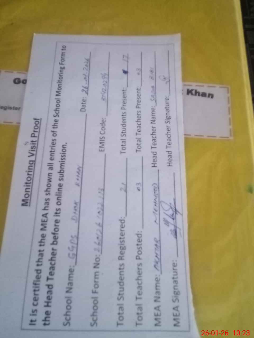 | EMIS Code: 37420294 | Name of School: GGPS DHOK KHAN | |||