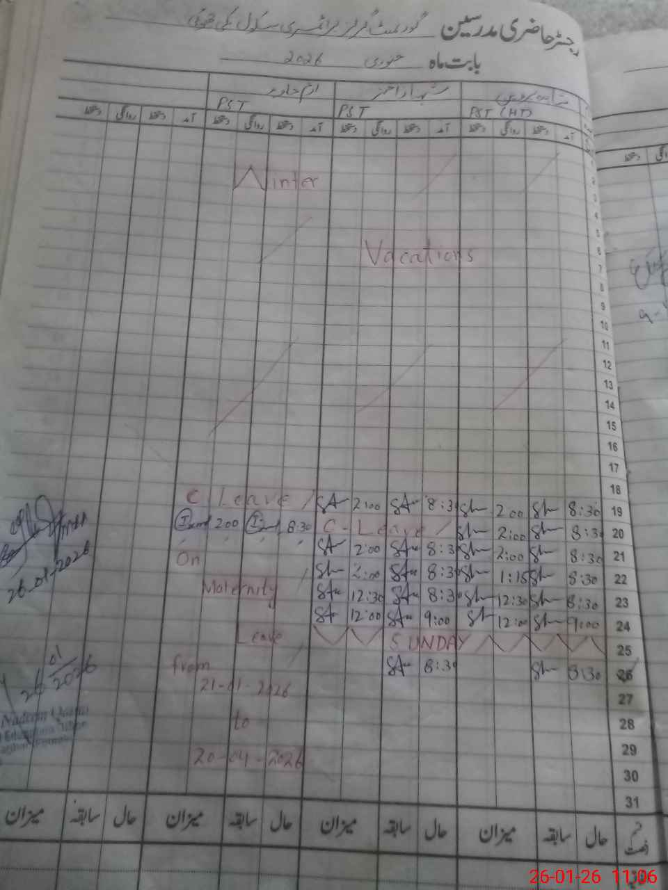 | 37**** | Ir**** Ja**** | PST Science/Maths | Regular | 0 | 0 | 0 | 0 | 0 | 0 | 0 | 0 | 0 | Maternity |