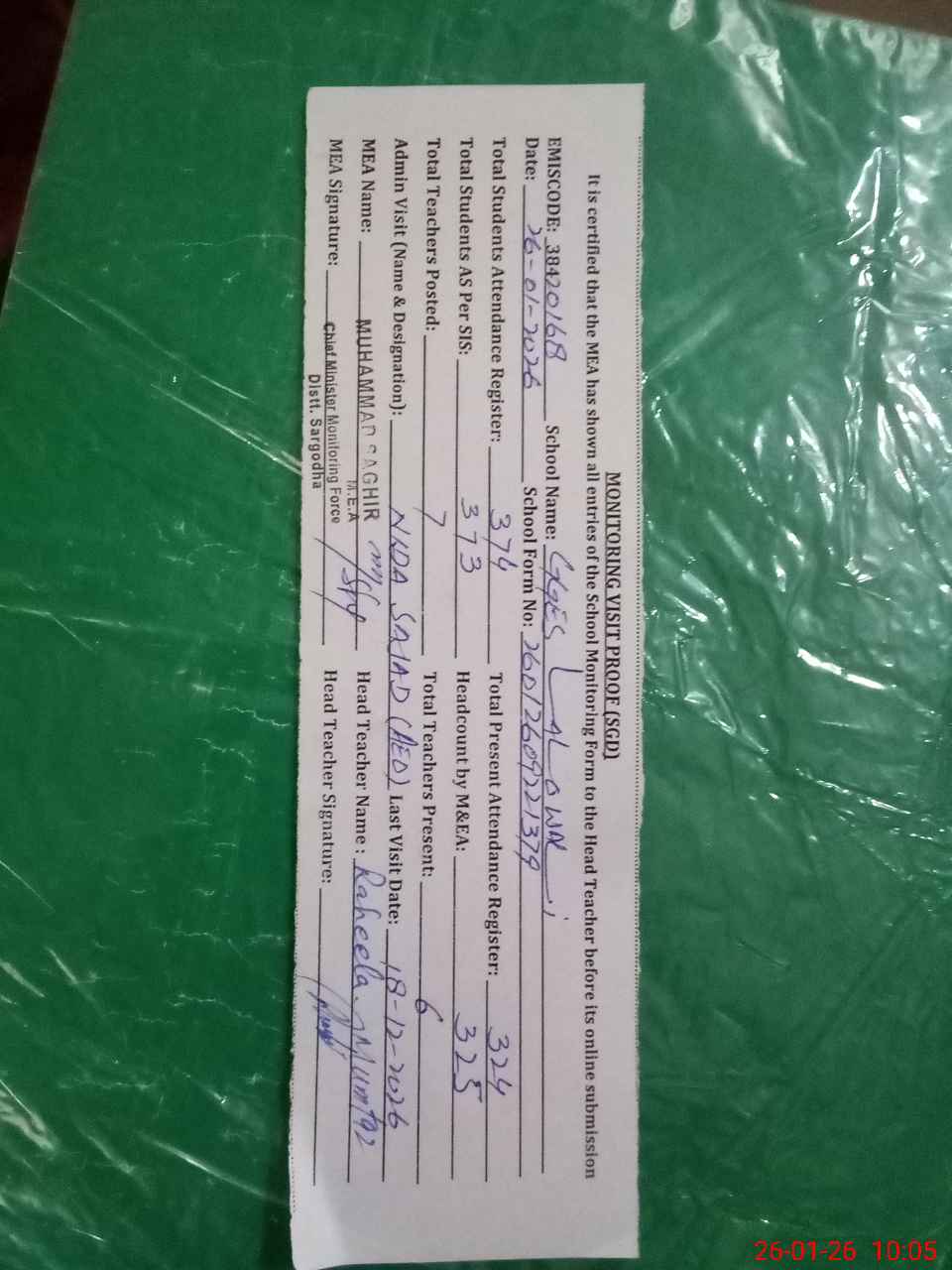 | Certified that this School was Inspected by the Undersigned MEA/DMO Today and the Information Stated Above is as Per Record. | |||||