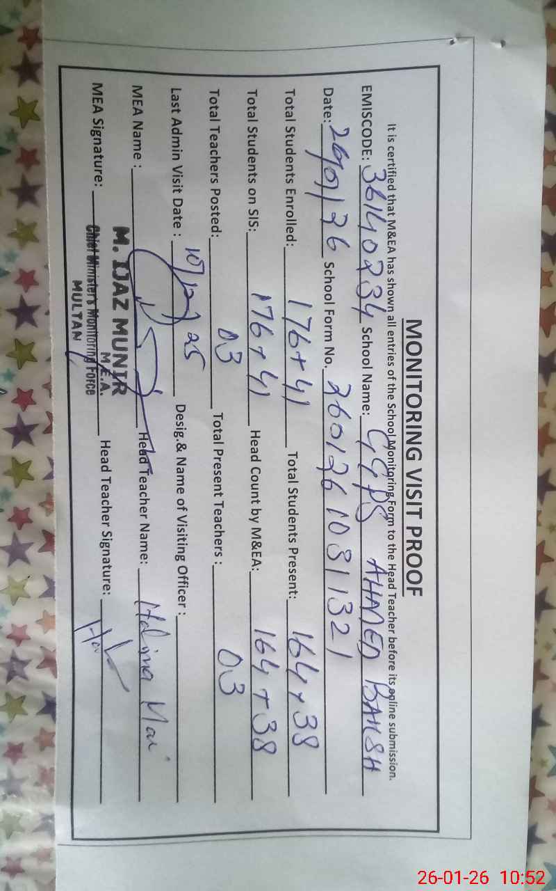 | EMIS Code: 36140234 | Name of School: GGPS AHMED BUKHSH WALI MOZA ADDO WALI | |||