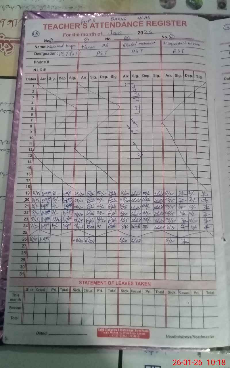 | Name: MU**** WA**** Designation: (School Headmaster's/Headmistress's) PST Phone/Cell Number: 03**** |