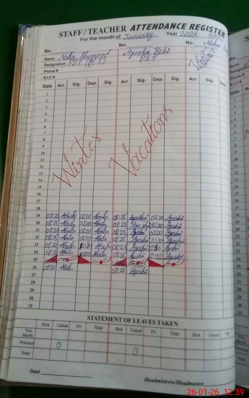 | Name: NA**** HA**** Designation: (School Headmaster's/Headmistress's) PST Phone/Cell Number: 03**** |