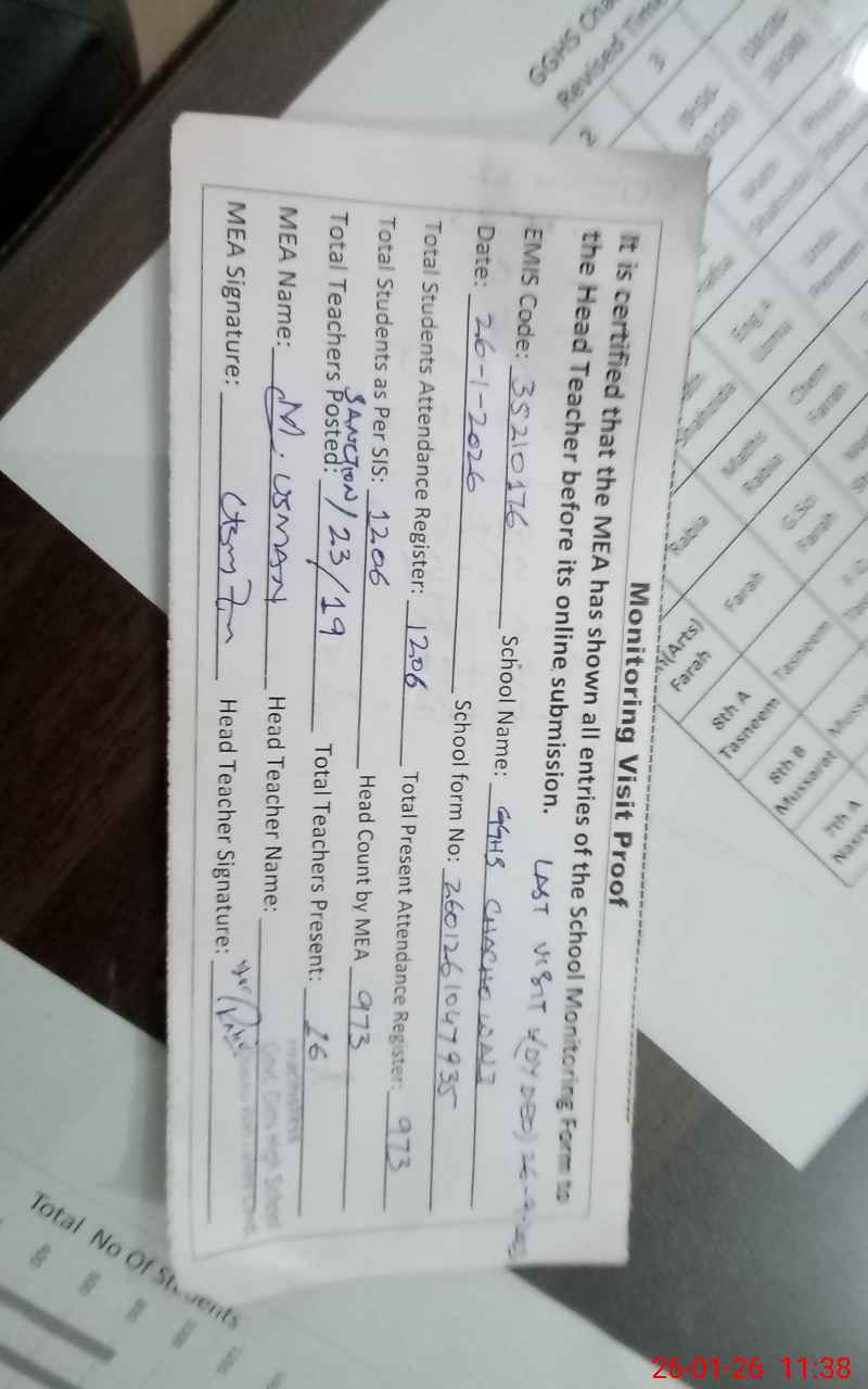 | EMIS Code: 35210176 | Name of School: GGHS CHACHO WALI | |||