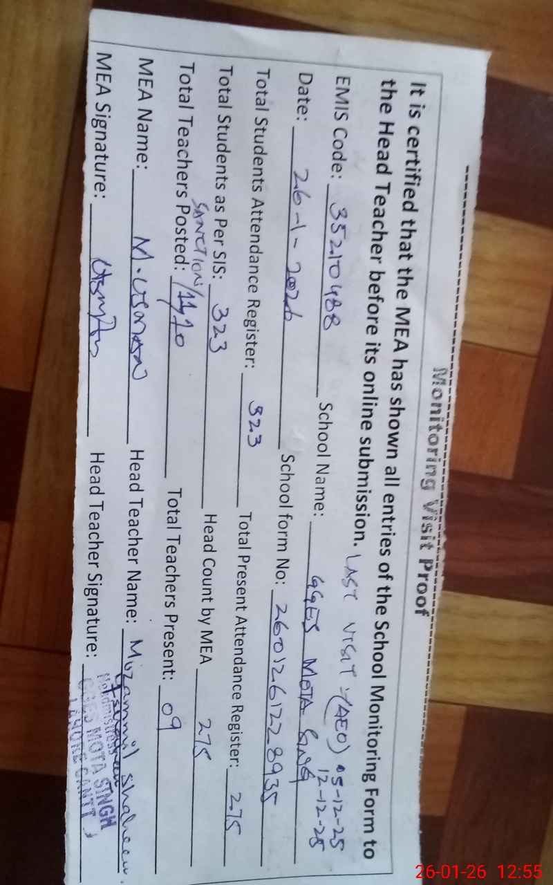 | Attendance Register | Head Teacher | MEA with School | Visit Proof |
