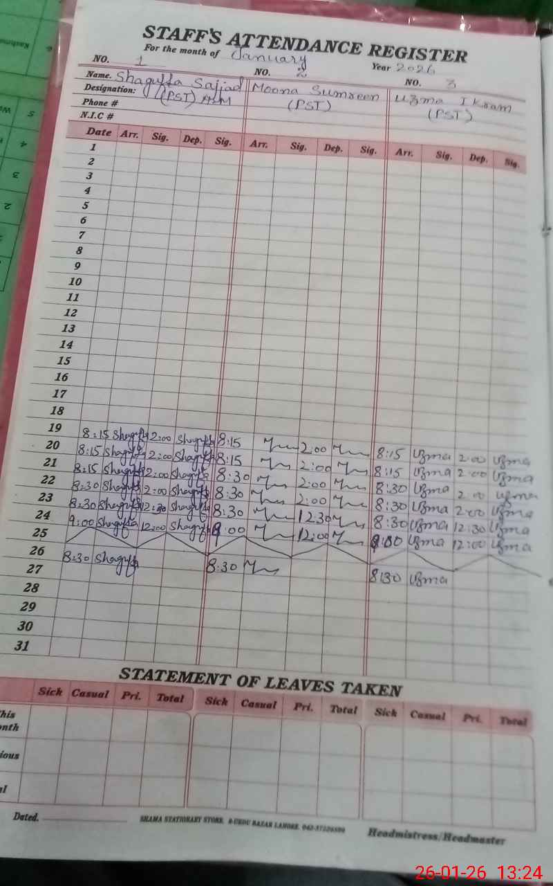 | Name: SH**** SA**** Designation: (School Headmaster's/Headmistress's) PST Phone/Cell Number: 03**** |