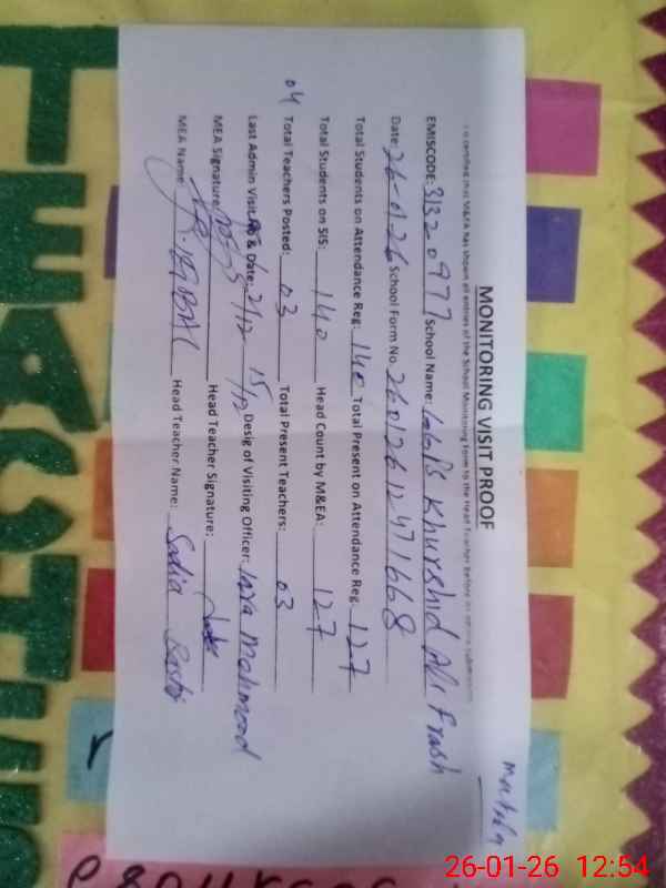 | EMIS Code: 31320977 | Name of School: GGPS KHURSHID ALI FRASH | |||