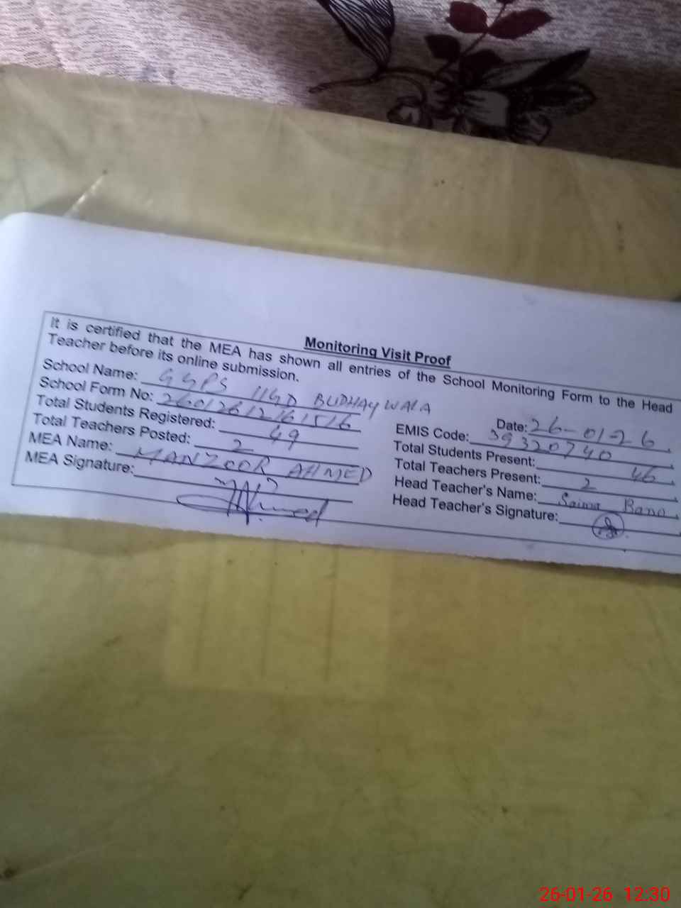 | EMIS Code: 39320740 | Name of School: GGPS 11/G.D BUDHAY WALA | |||