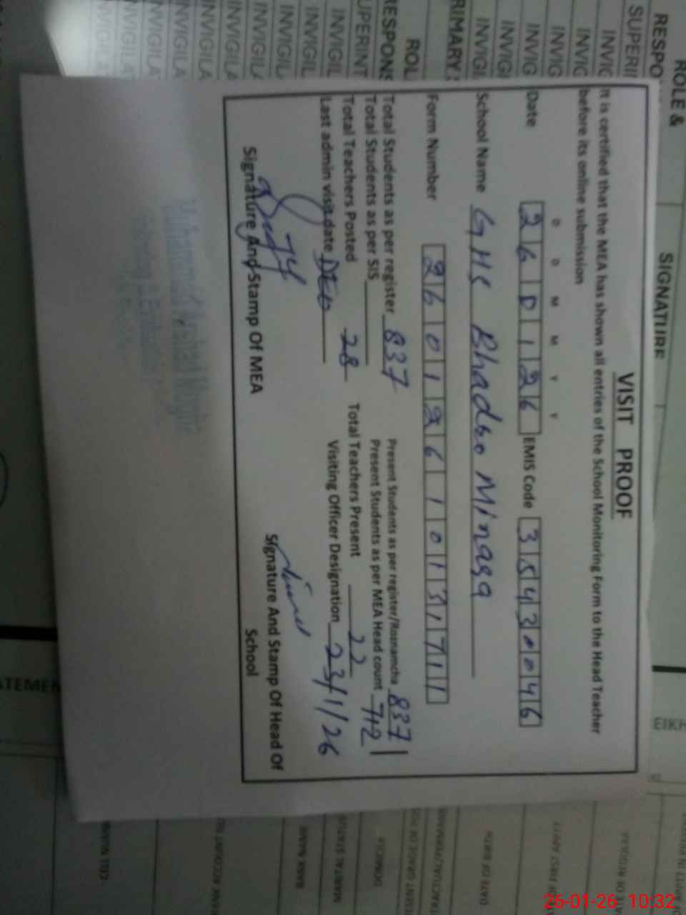 | Certified that this School was Inspected by the Undersigned MEA/DMO Today and the Information Stated Above is as Per Record. | |||||