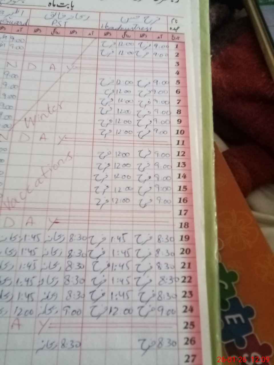 | Leave | Duty | Absent | Maternity | Medical | Ex- Pak |