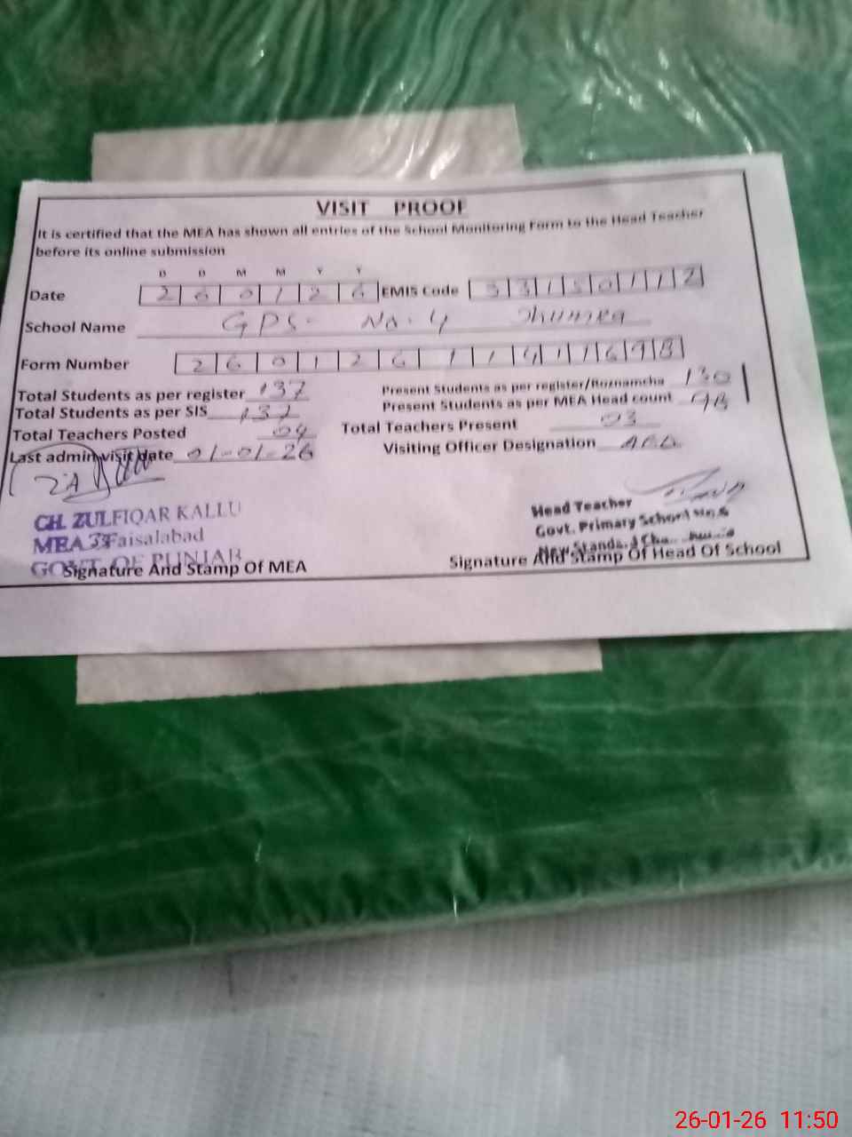 | EMIS Code: 33150112 | Name of School: GPS NEW STANDARD CHAK JHUMRA | |||