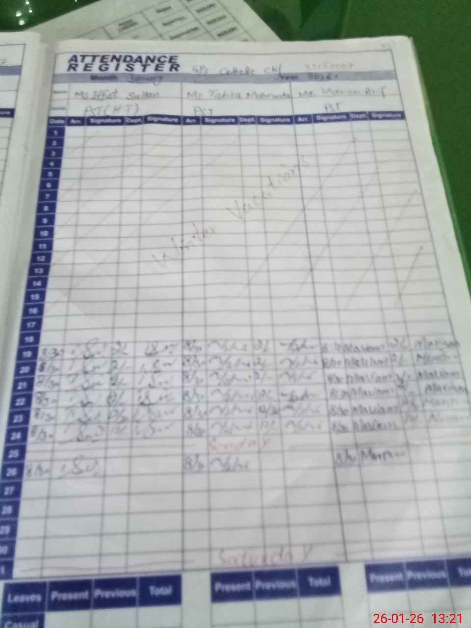 | Leave | Duty | Absent | Maternity | Medical | Ex- Pak |