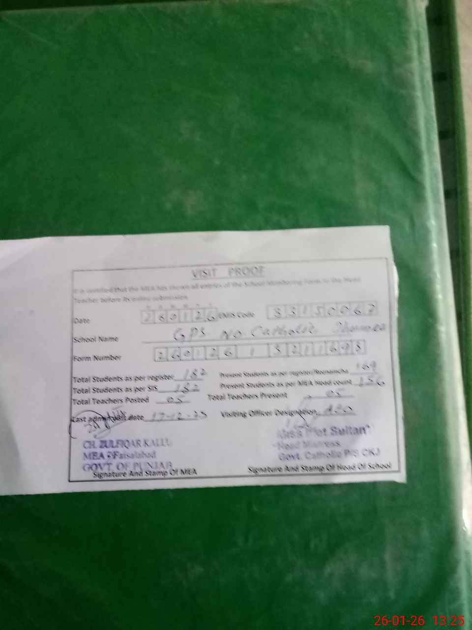| Attendance Register | Head Teacher | MEA with School | Visit Proof |