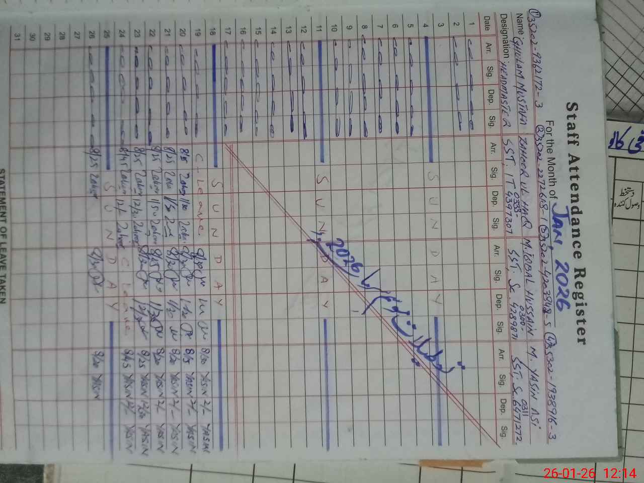 | 35**** | Sa**** Ib**** | LAB ASSTT | Regular | 0 | 0 | 31 | 0 | 0 | 0 | 0 | 0 | 0 | Absent (Un-Authorized) |
